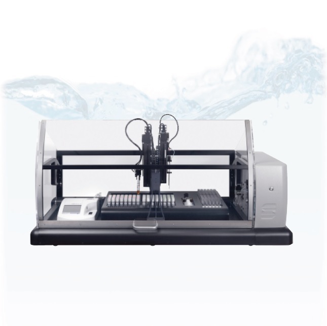 分析仪具有一个XYZ样品处理系统,并配有4至6个可互换的20位样品架,样品从消化至滴定过程中可保留在同一个测试管中。此外,分析仪配有滴定仪、滴管、电极和搅拌器。分析仪可配置两套滴定仪用以当测量范围扩展时,无需更换滴管。